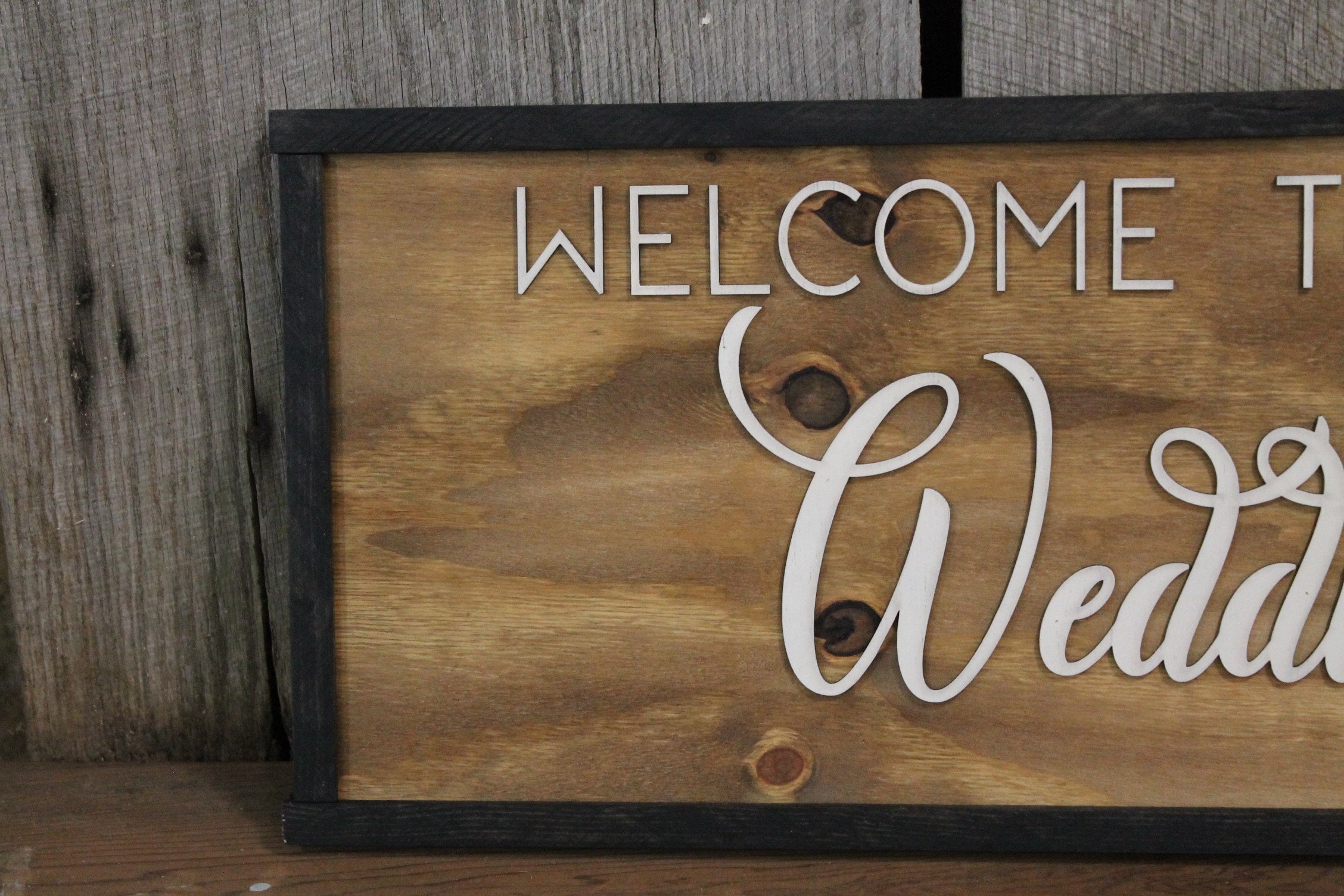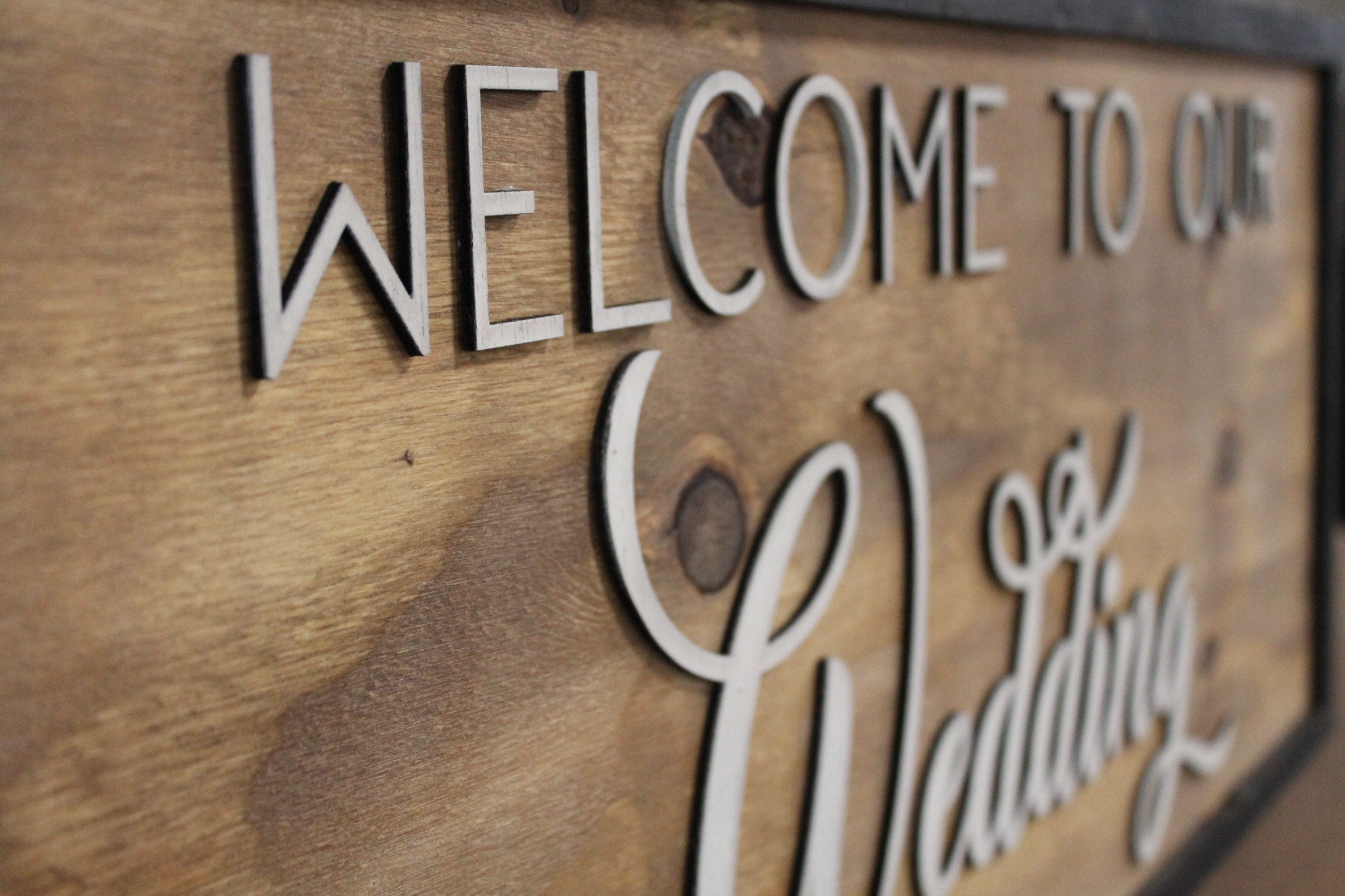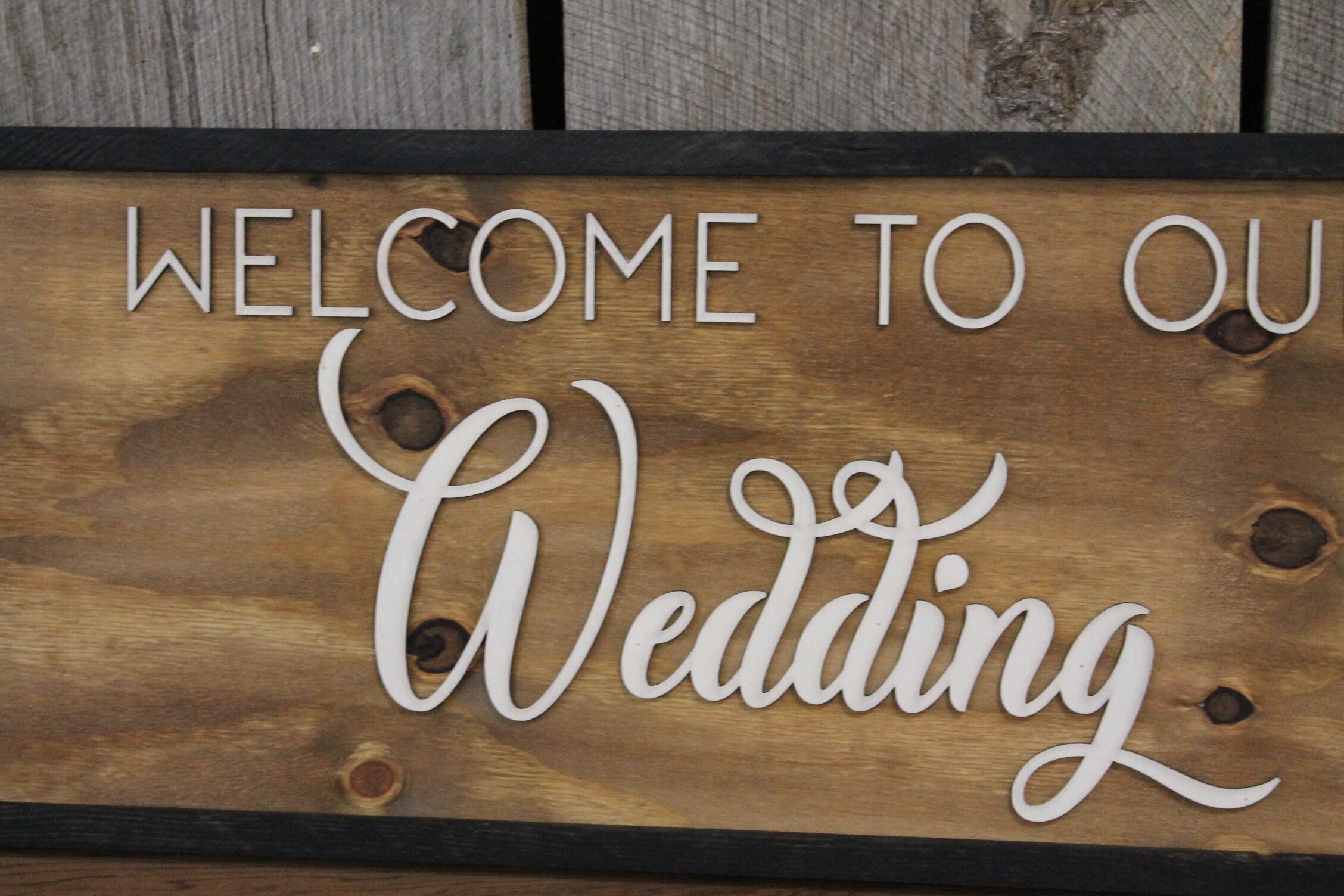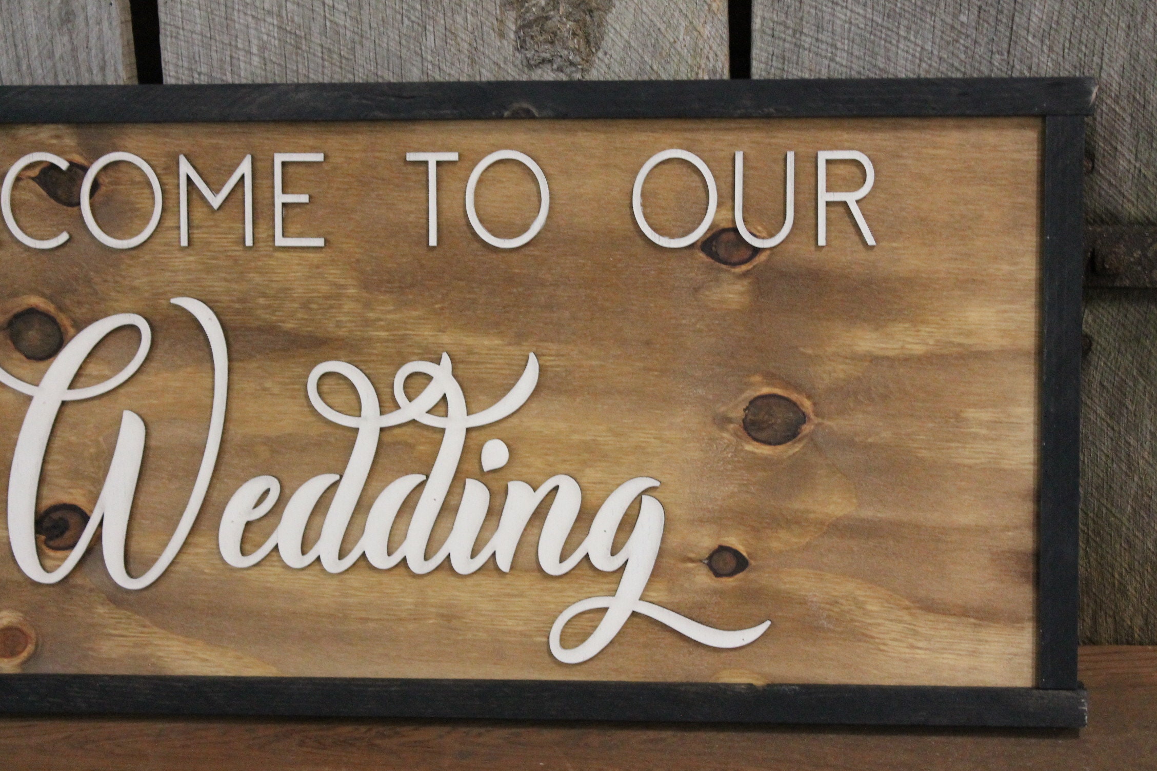 Rustic Welcome to Our Wedding Sign Raised Text Large Framed Primitive Barn Wood Country Signage 3D Reception Decoration Table