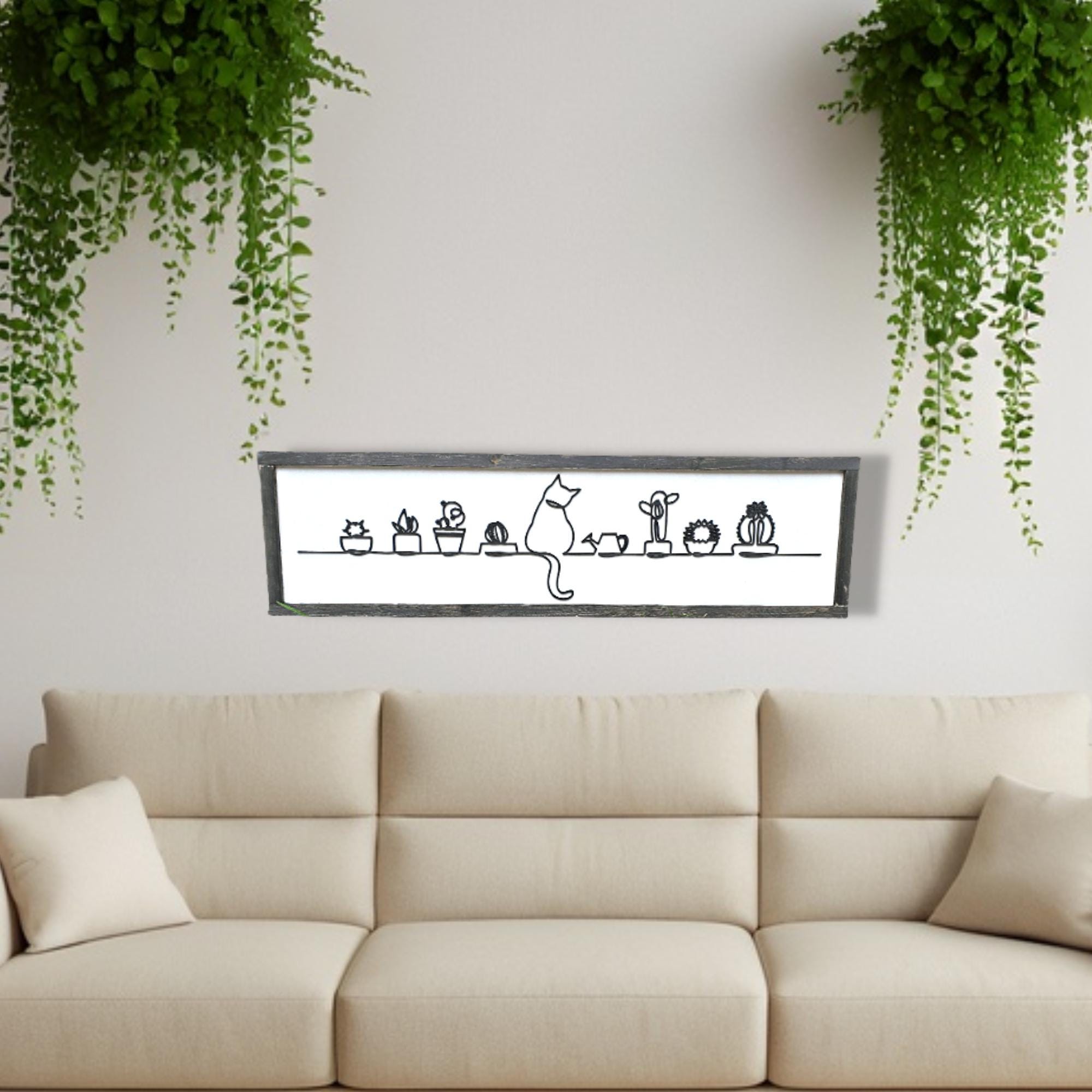 Minimalist Cat & Plants Line Art • Modern Single Line Wall Decor • Botanical Boho Home Art Print