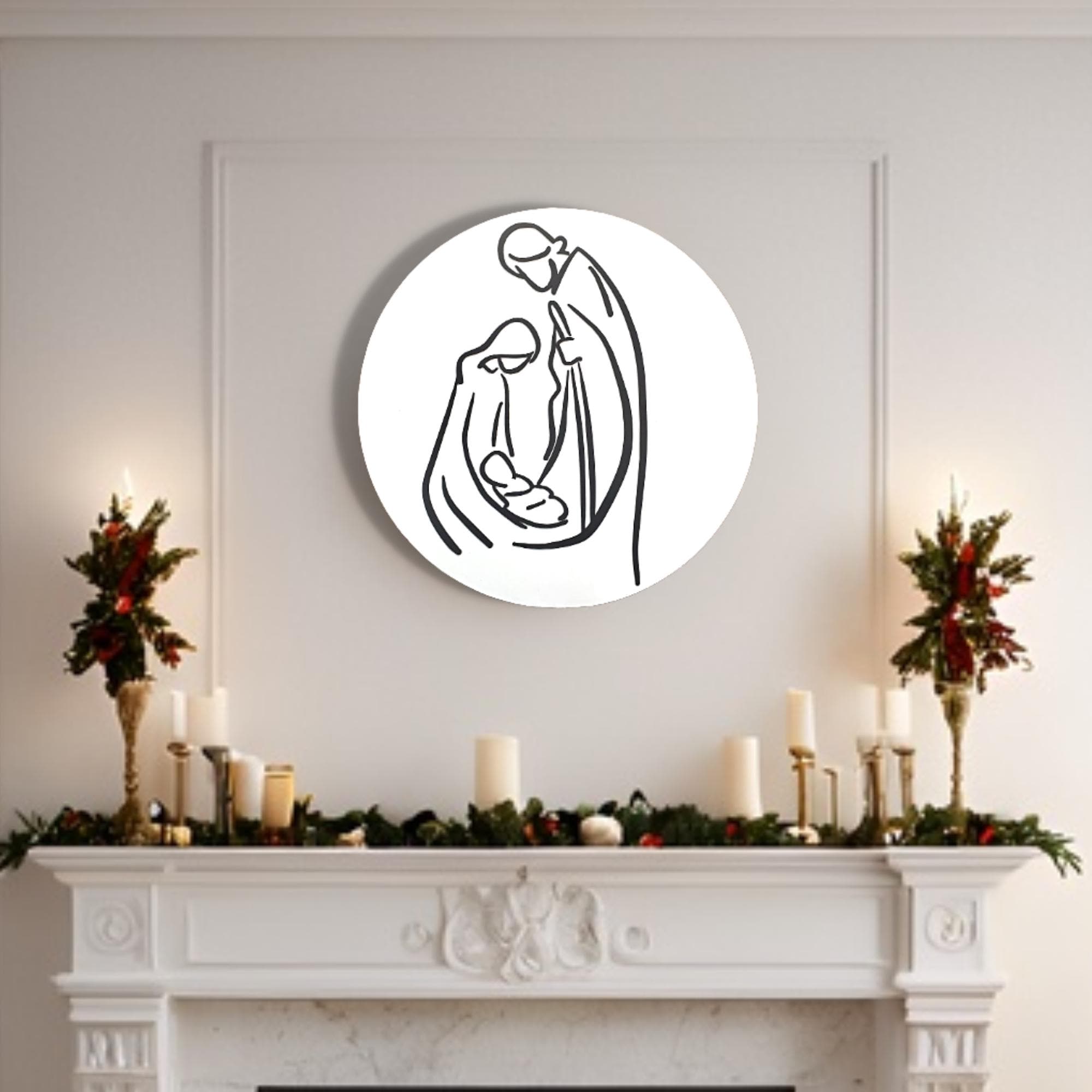 Nativity Printed & Raised 3D Sign • Minimalist Christmas Wood Decor • Holy Family Line Art Sign • Christian Holiday Wall Art