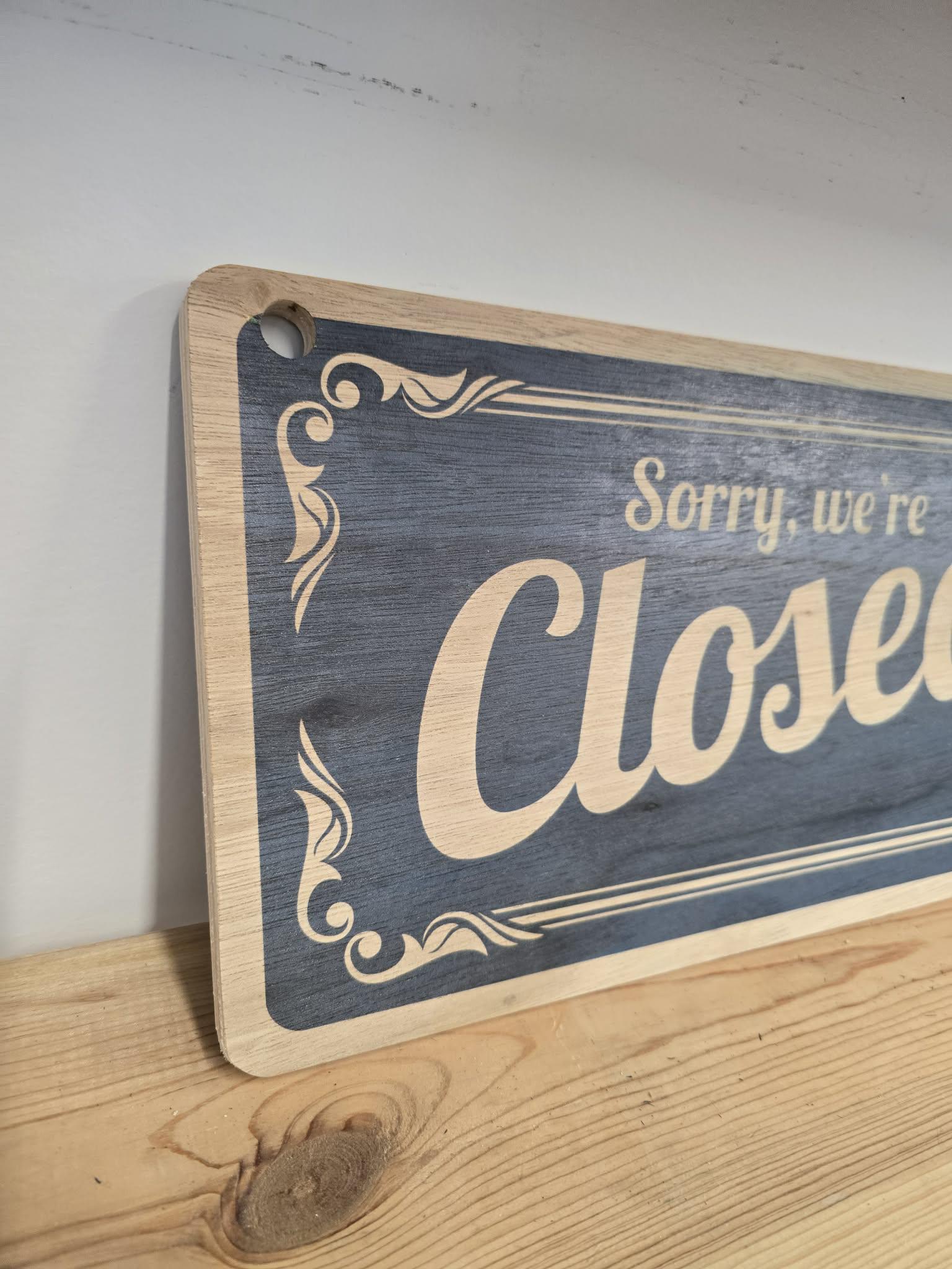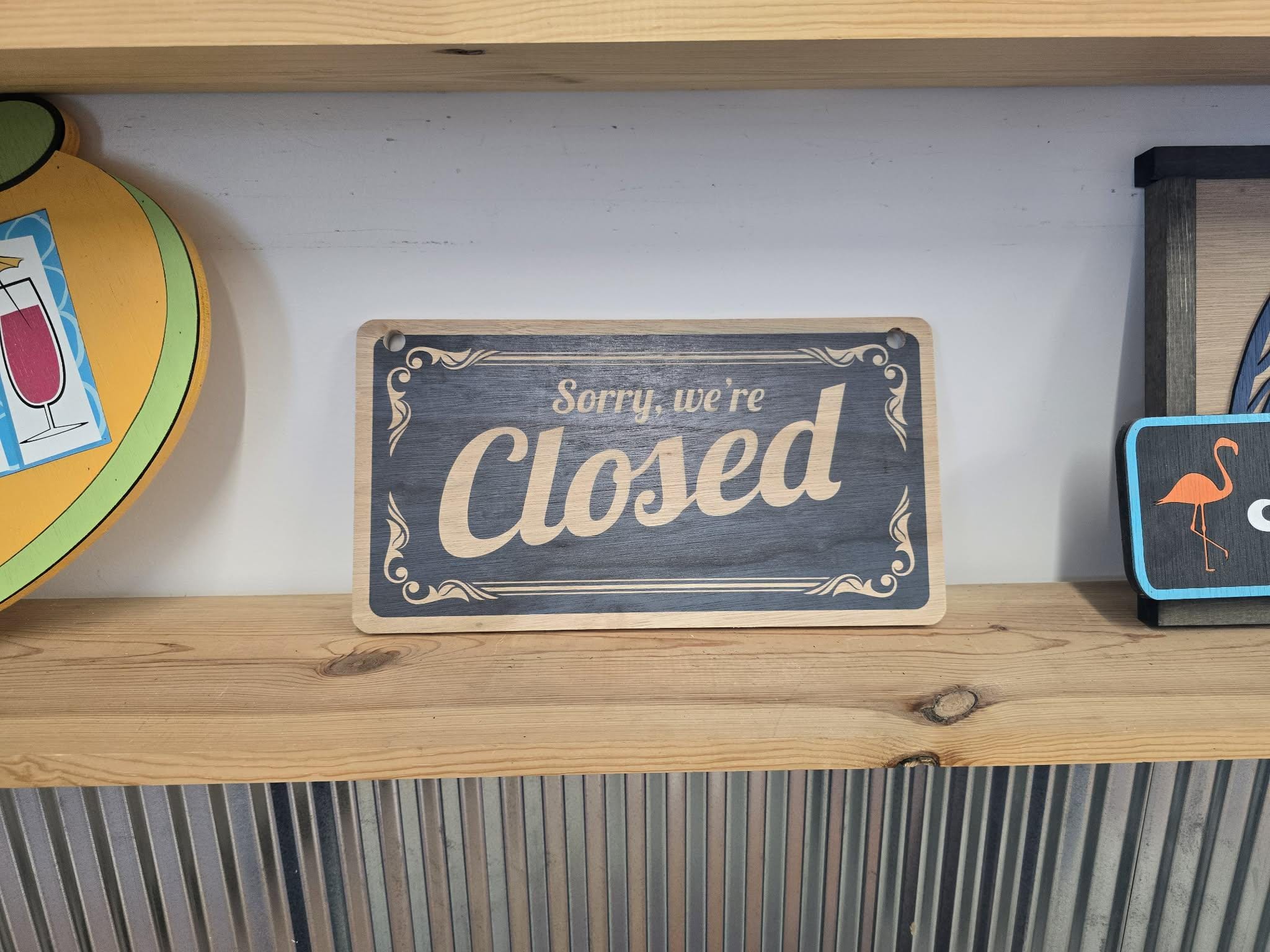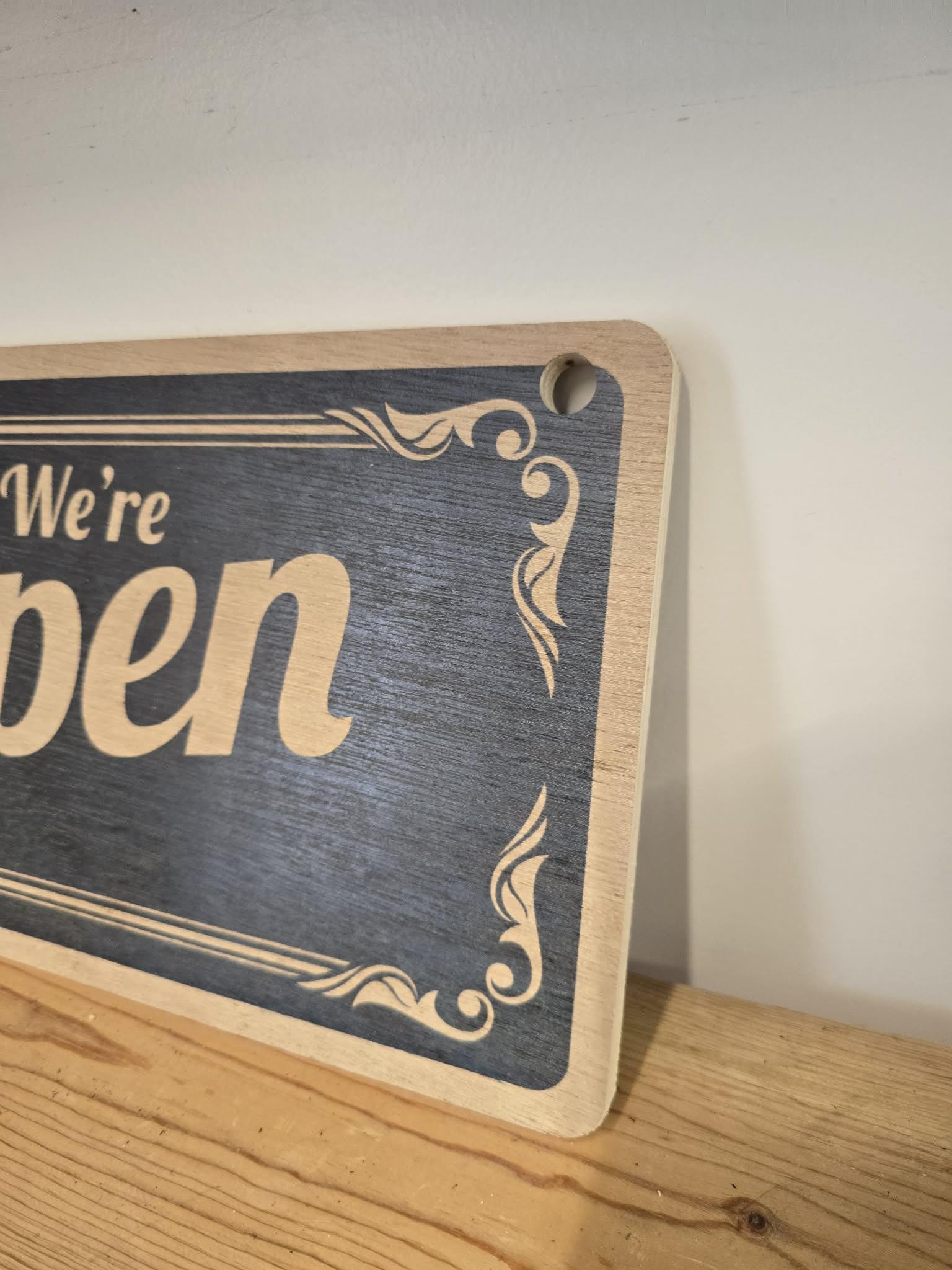 Title: Open Closed Double Sided Close Advertising Small Business Wooden Front Door Entry Way Decor Plaque Wood Print