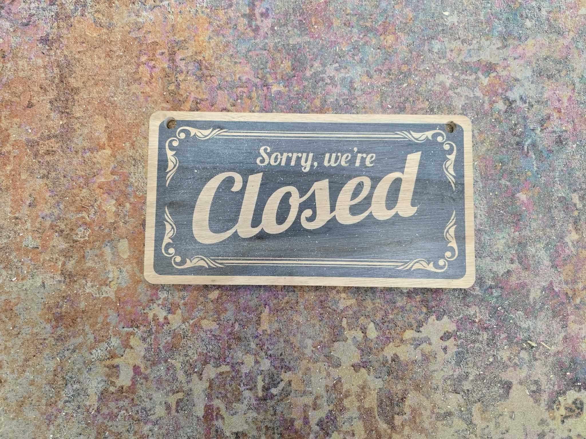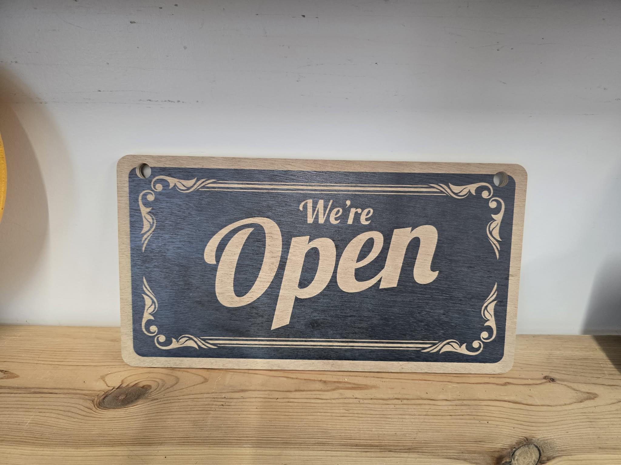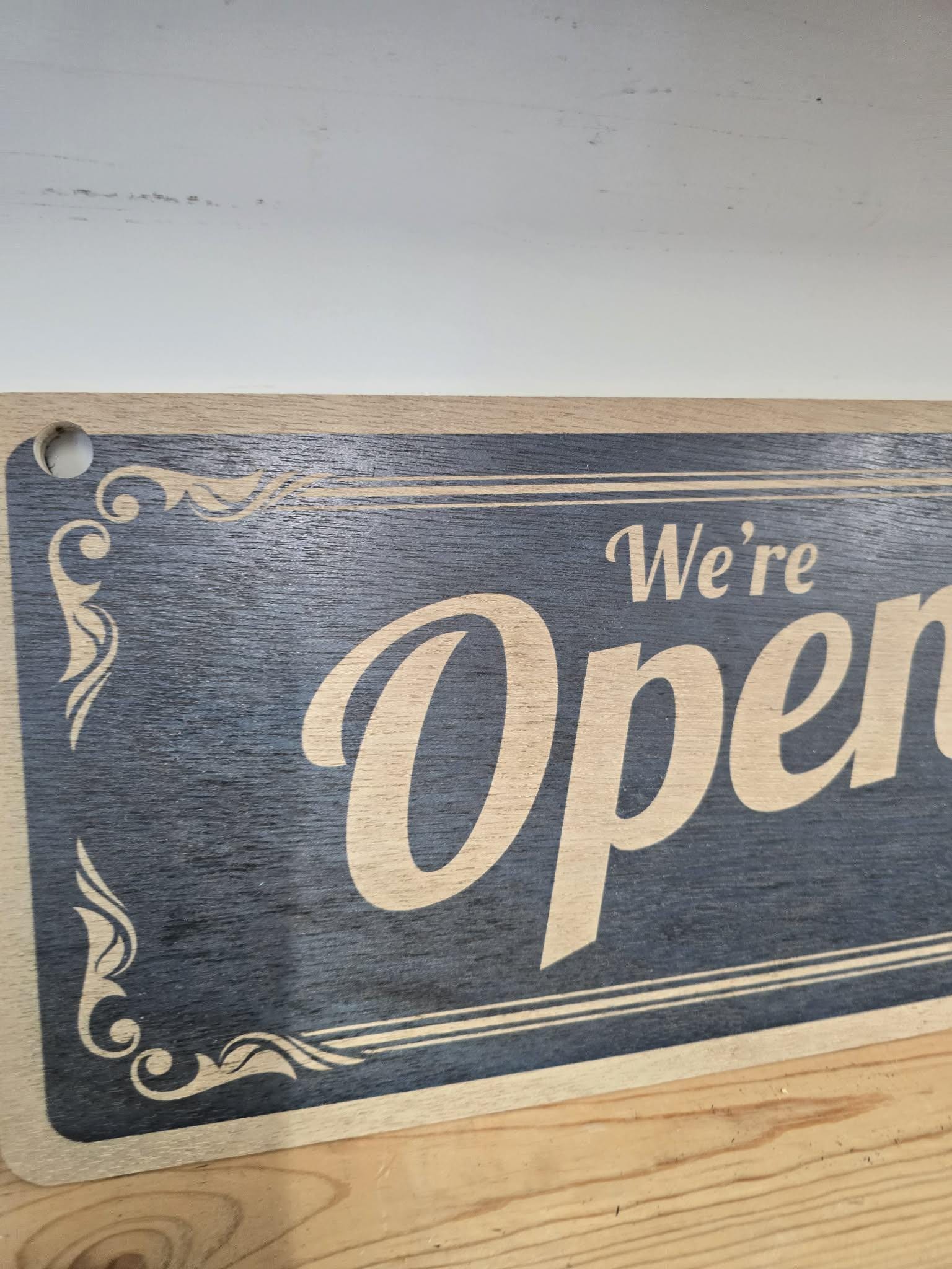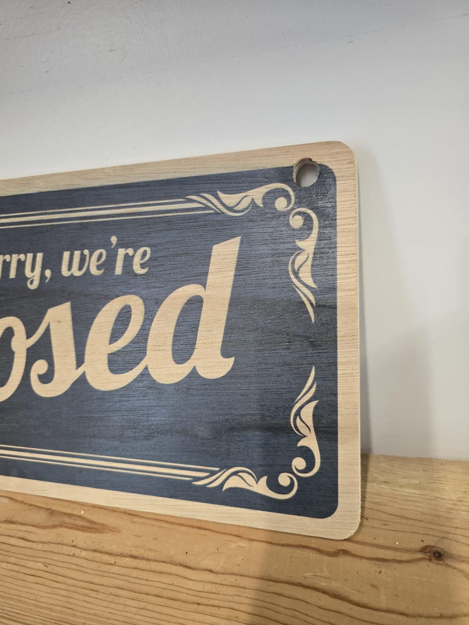 Title: Open Closed Double Sided Close Advertising Small Business Wooden Front Door Entry Way Decor Plaque Wood Print