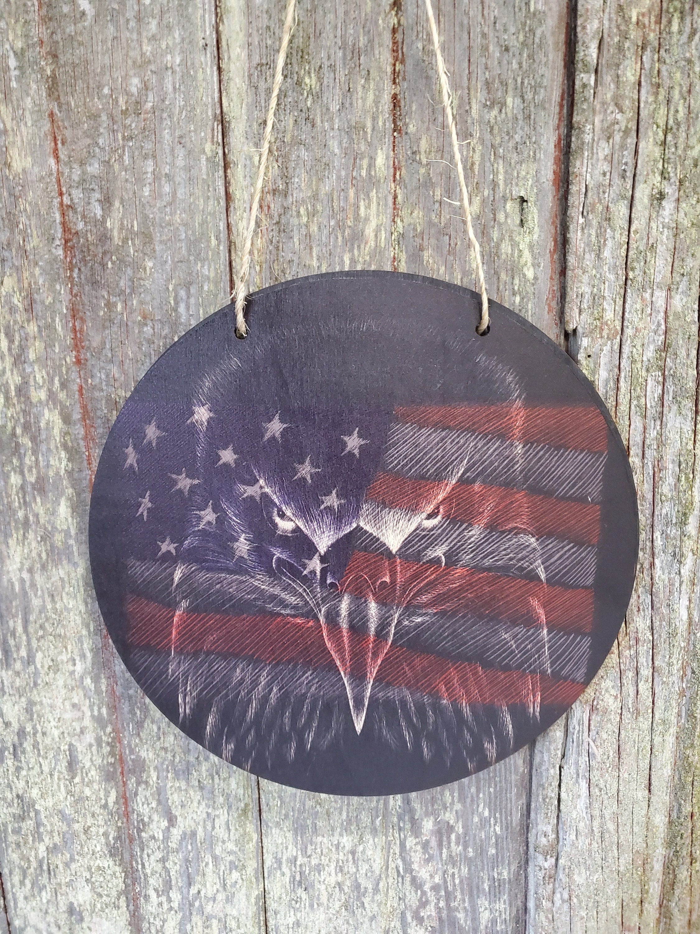 Patriotic Eagle Printed Wood Sign • American Flag Wall Art • Rustic USA Decor • Bald Eagle Patriotic Hanging Sign