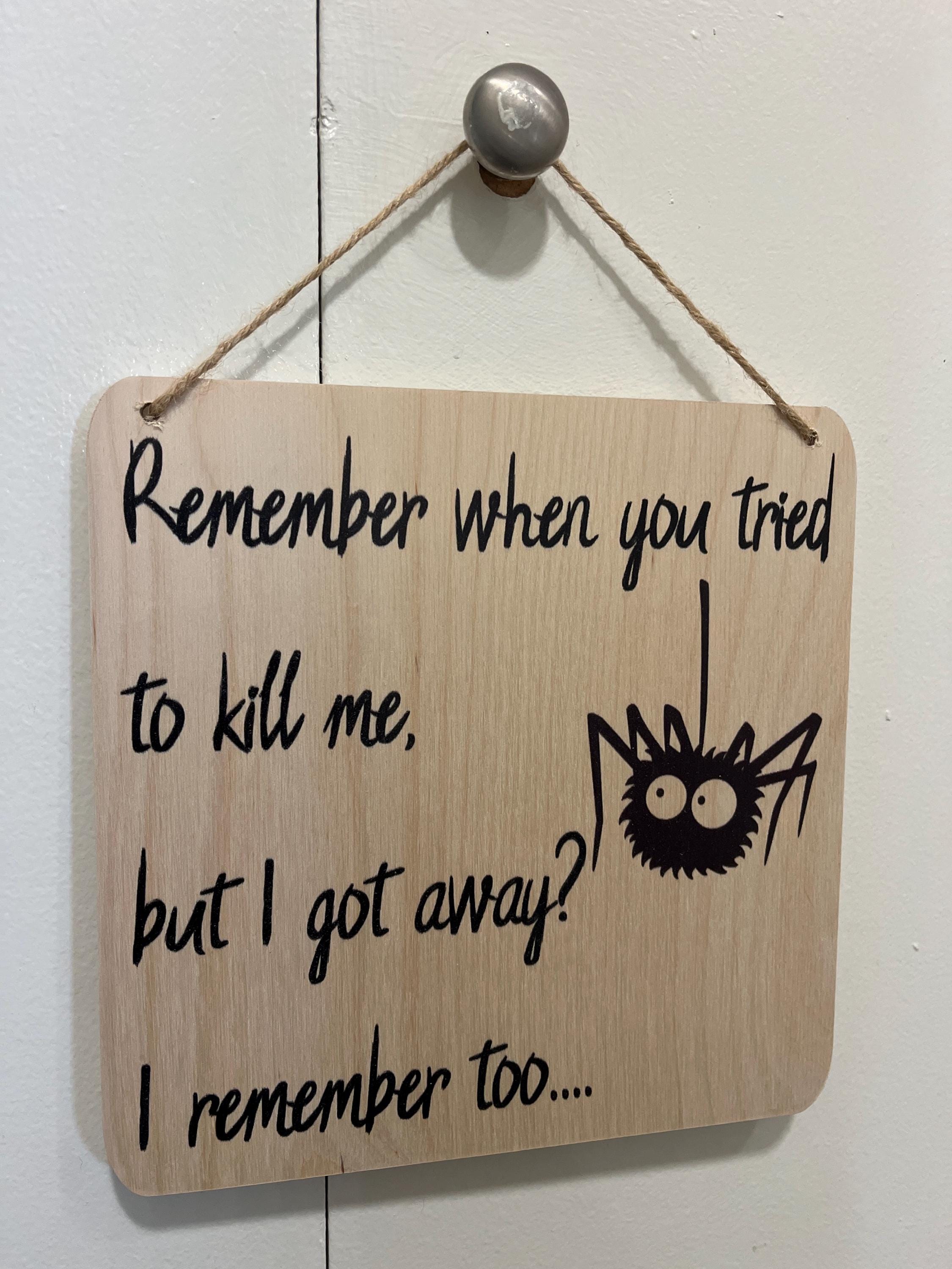 Title: Spider Funny Sign Wood Decor Halloween Fall Remember When You Tried To Kill Me Decoration Joke Wall Décor Wood Print