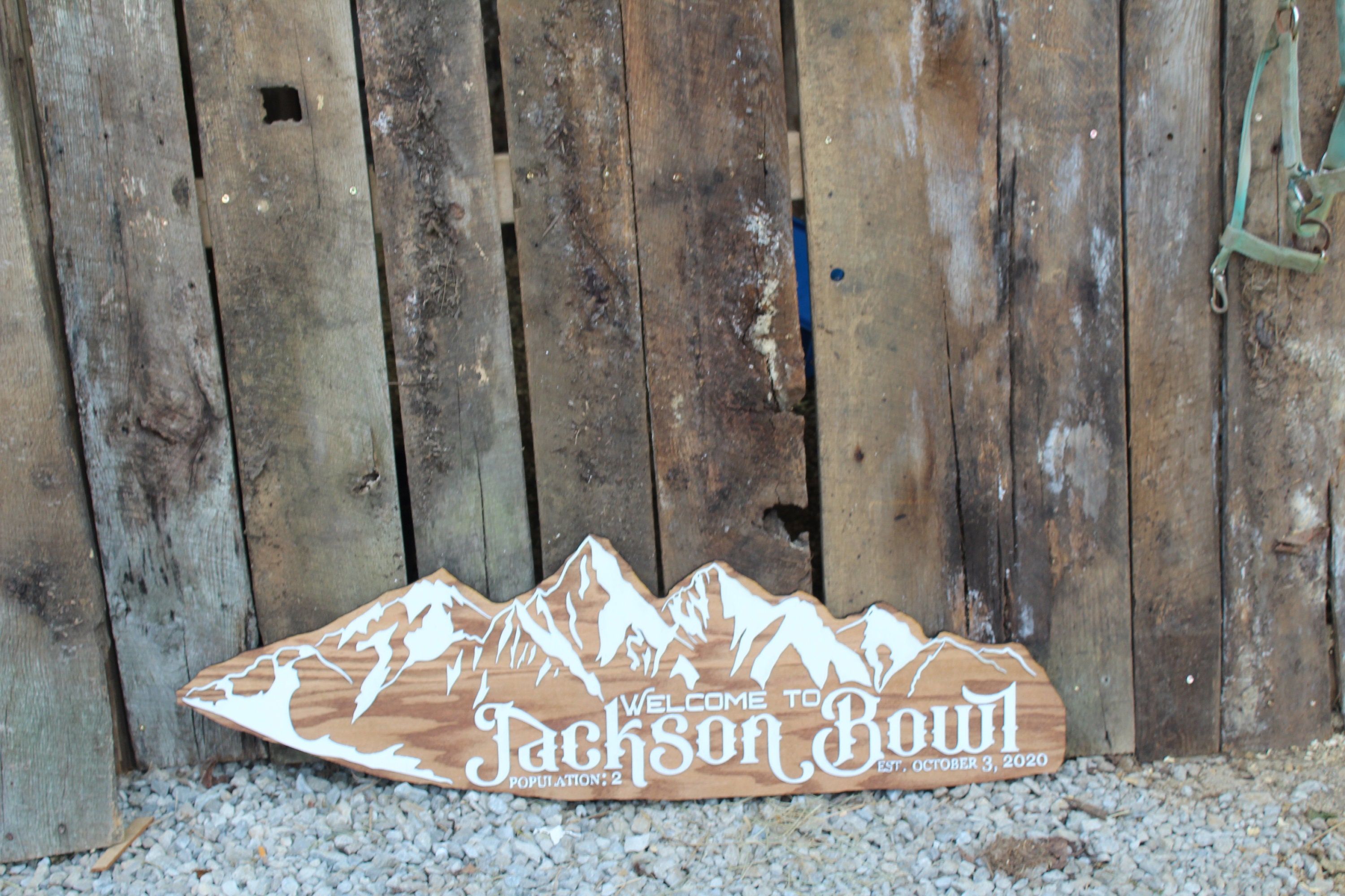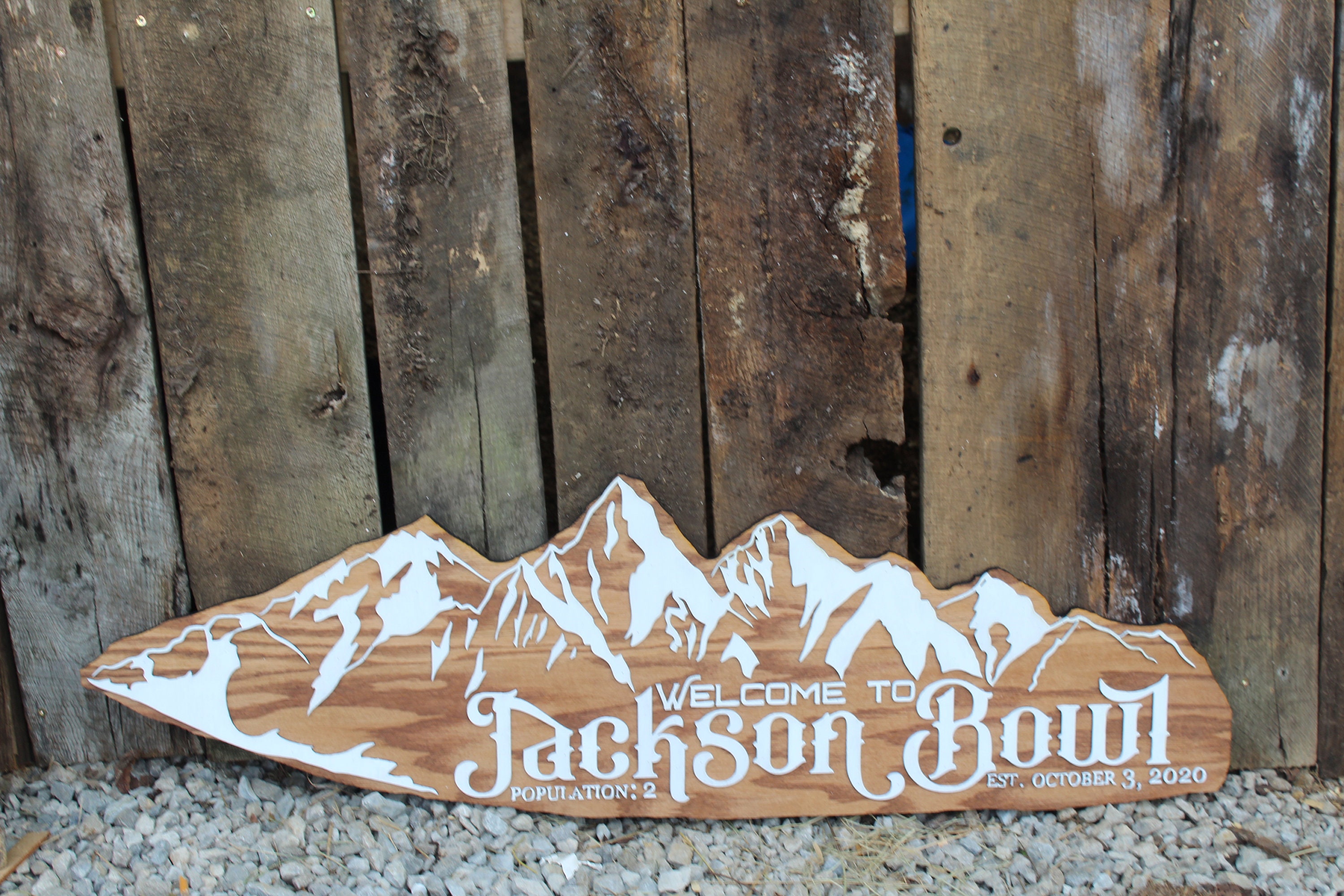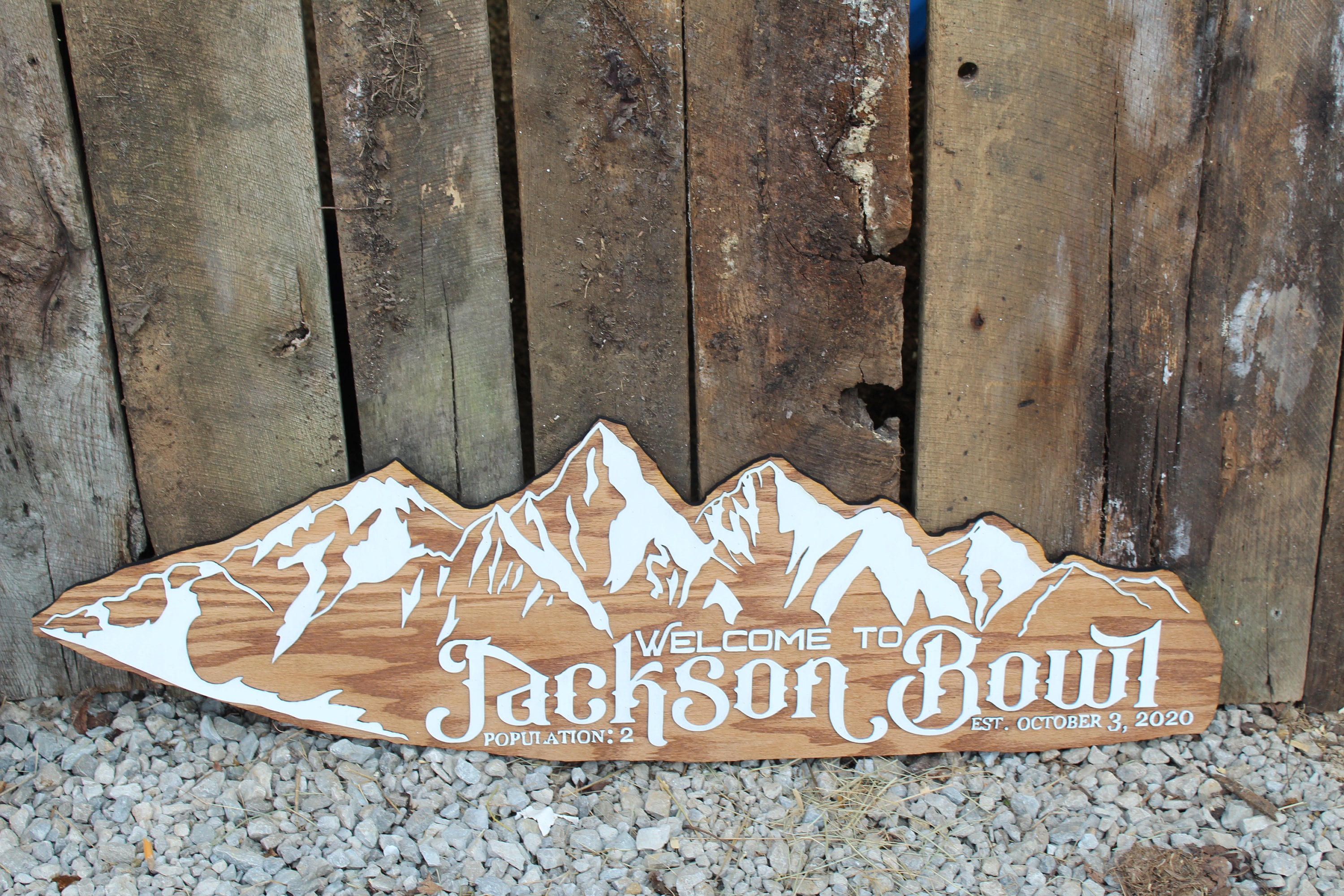 The item we are offering is a wonderful handcrafted handmade contoured sign. This mountain shaped sign featuring snowcaps can be personalized with whatever you would like. Whether you would like your last name, business name, or something else, let us know and we can customize it for you! This sign would be perfect for a mountain lodge, ski lodge, log cabin, bnb, home, or wherever you'd like some mountainous decor!