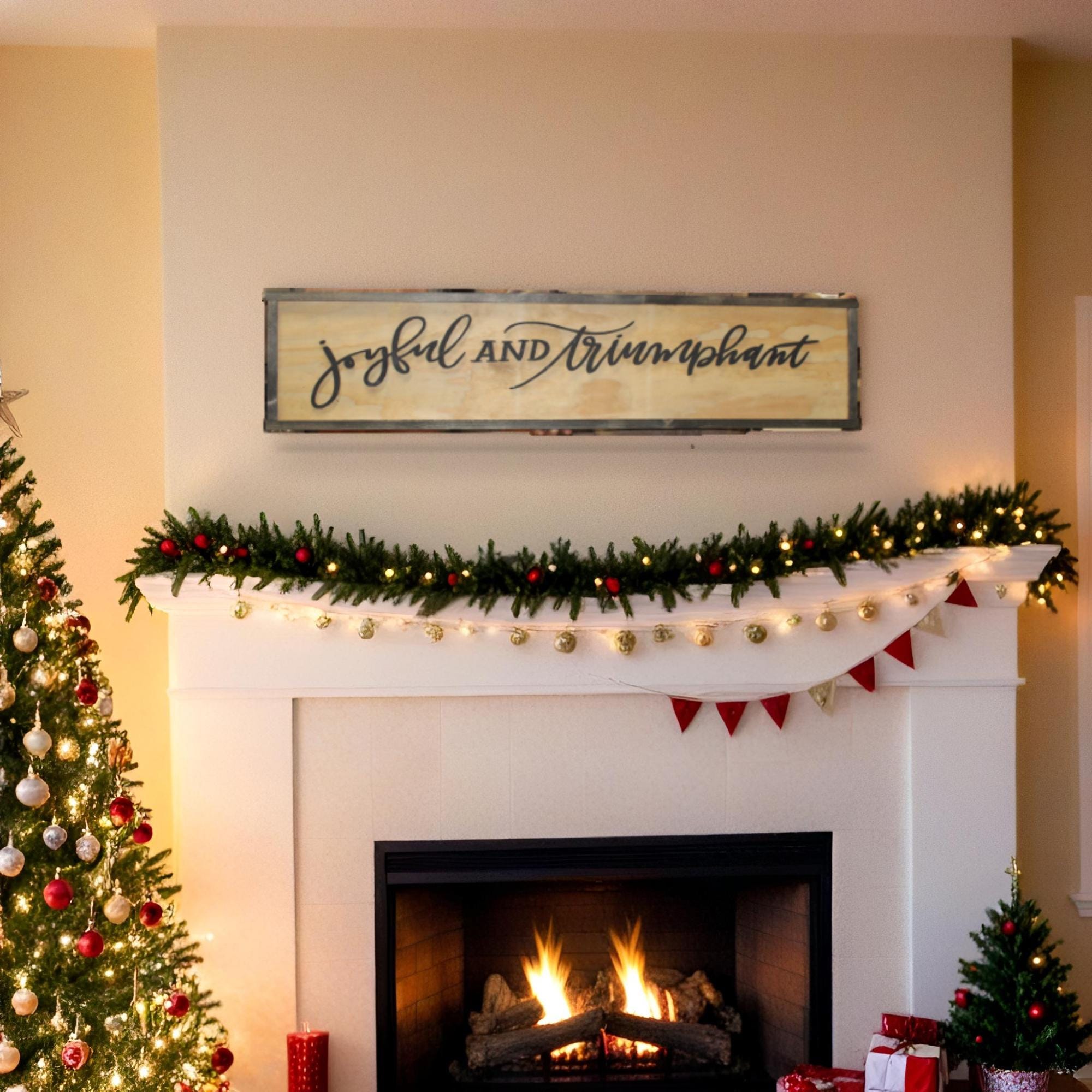 The size is in inches, and it is the overall size of the size, frame included. It is mounted on medium brown stained 3/8 inch plywood with 1/4 inch laser cut plywood letters. Complete with solid wood frame. The frame is stained in an ebony coloring.