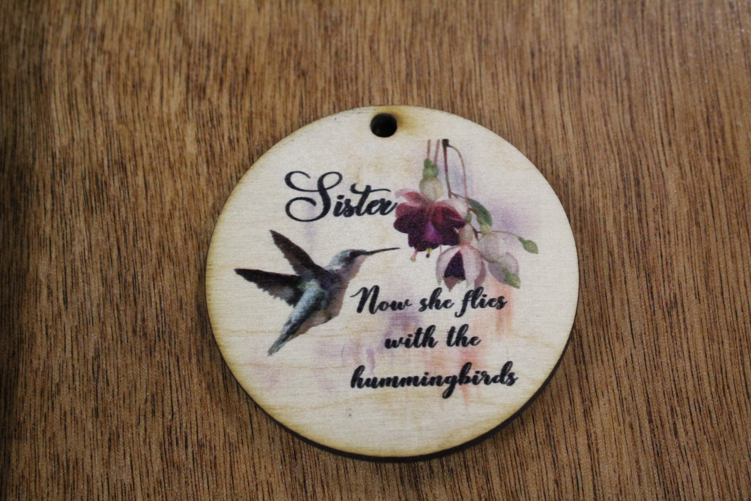 Printed Memorial Hummingbird Ornament • “Now She Flies With the Hummingbirds” • UV‑Printed Remembrance Gift for Sister