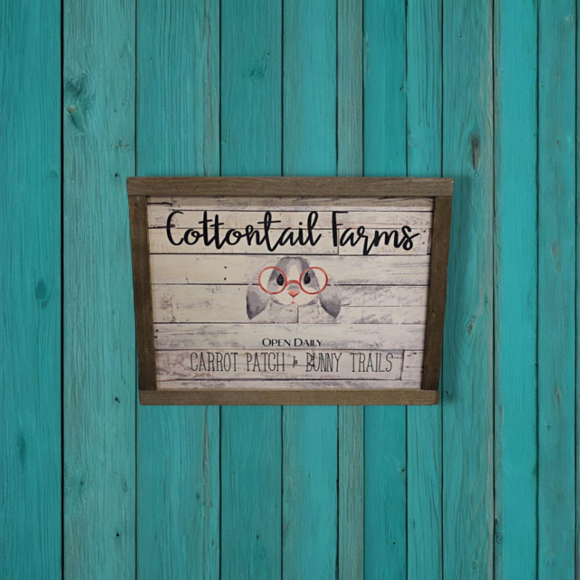 Printed Cottontail Farms Sign • Rustic Bunny Farmhouse Decor • Full‑Color Spring & Easter Wall Sign
