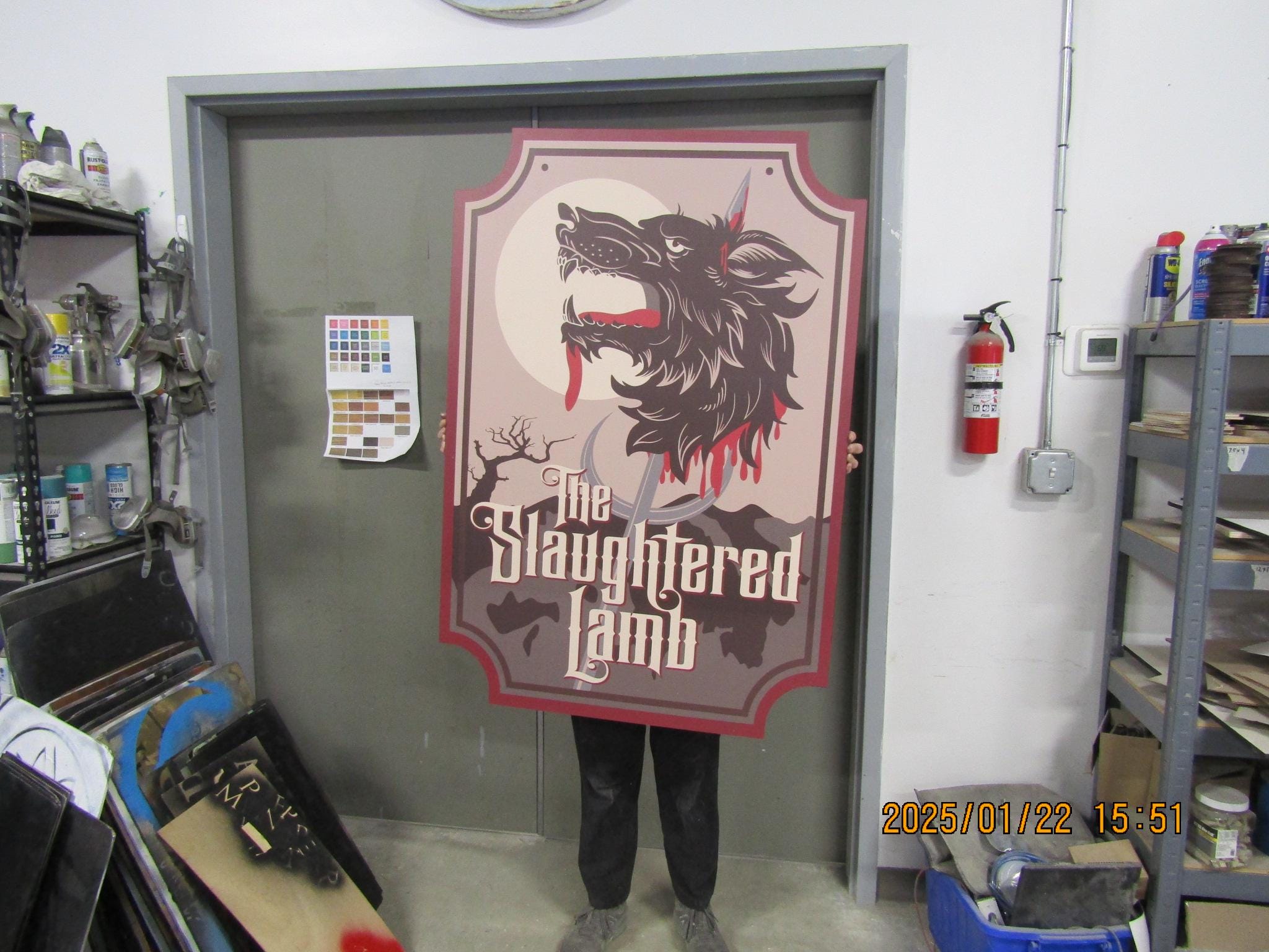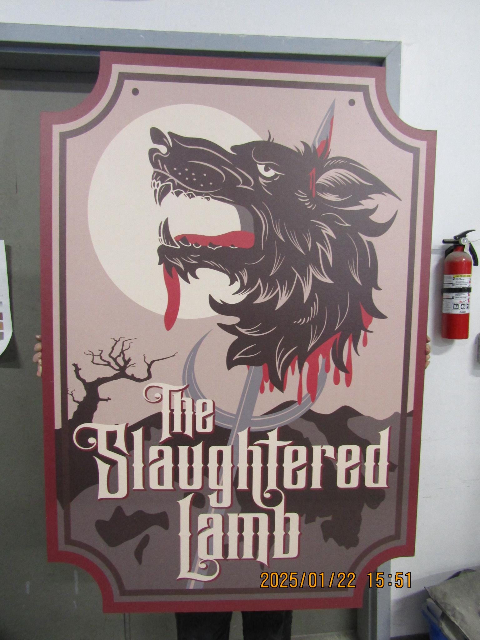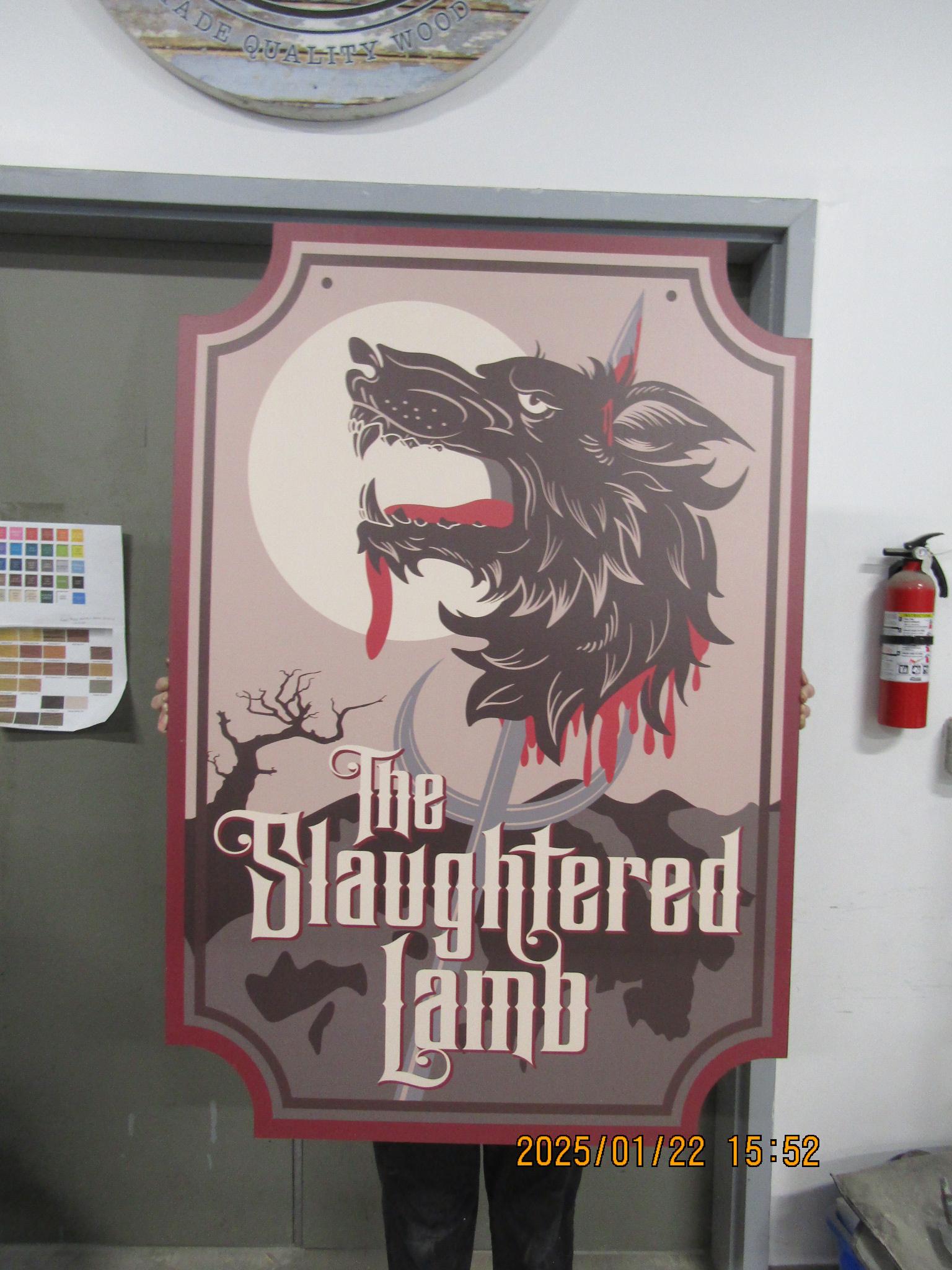 Large Slaughtered Lamb Sign with UV Ink Printed Extra Detail Contour Business Logo Wood