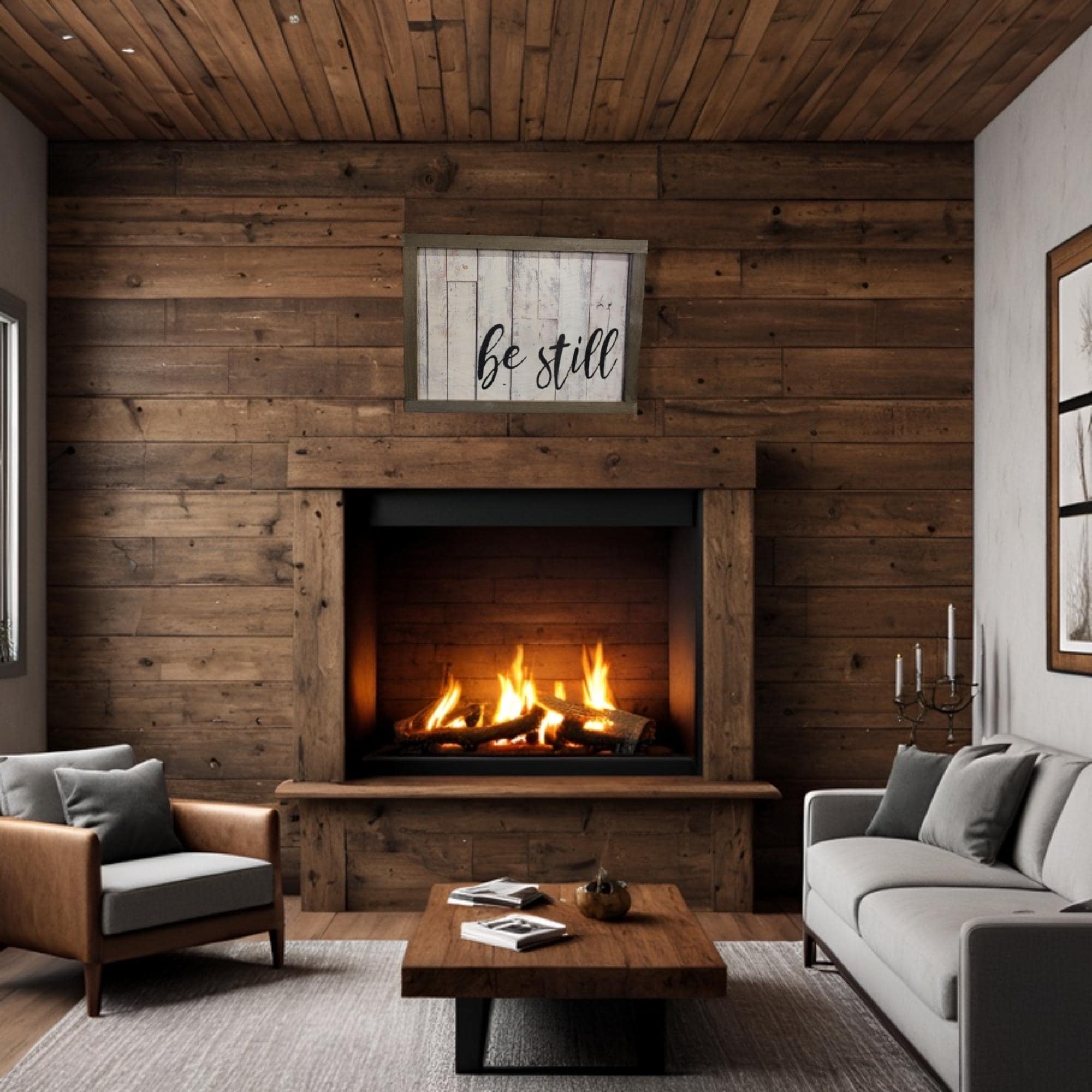 Be Still Sign Rustic Wood Framed Wall Art Printed Scripture Sign Farmhouse Christian Home Decor Minimalist Bible Verse Sign Christian Gift