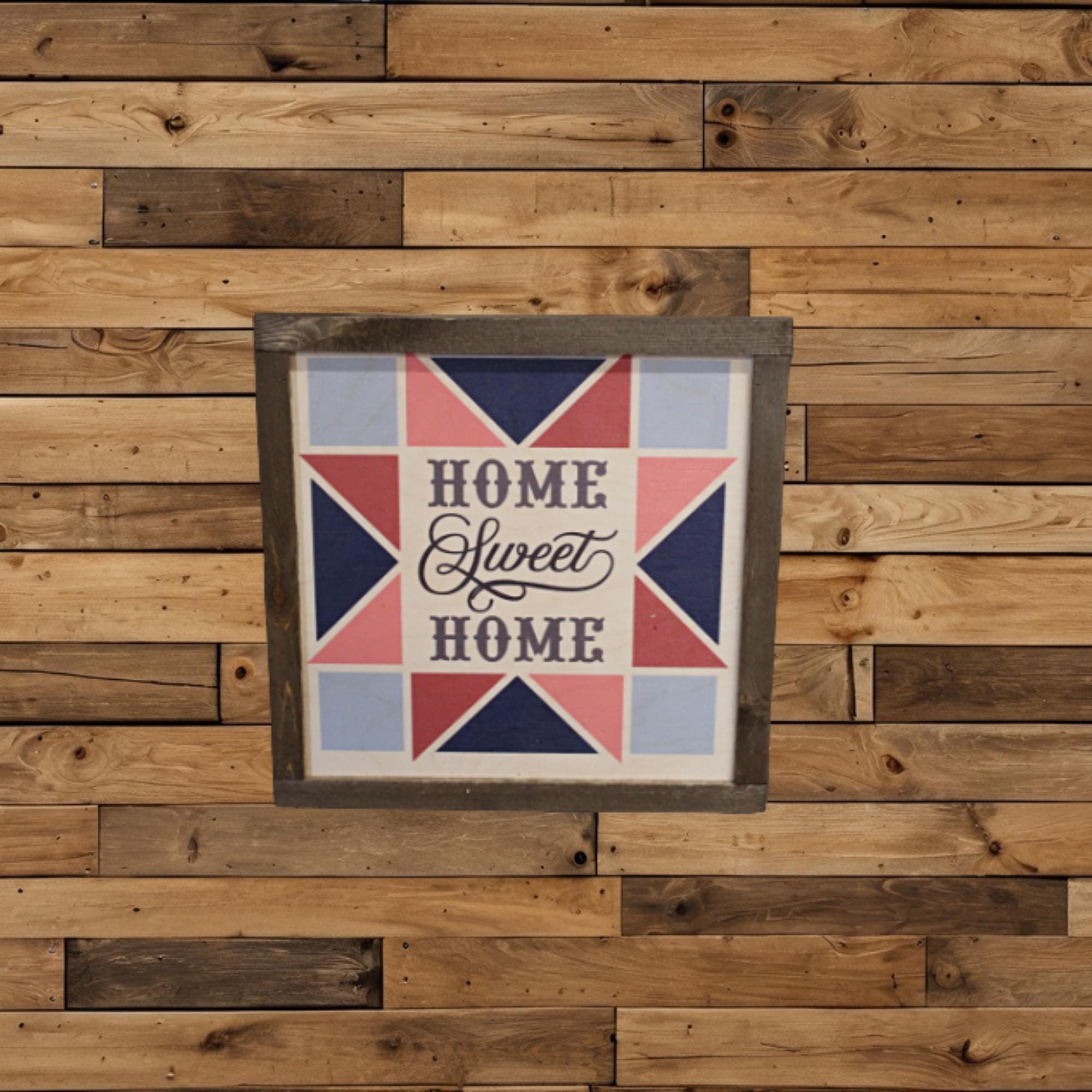 Home Sweet Home UV Printed Sign • Rustic Quilt Pattern Wood Decor • Modern Farmhouse Wall Art • Colorful Geometric Home Sign