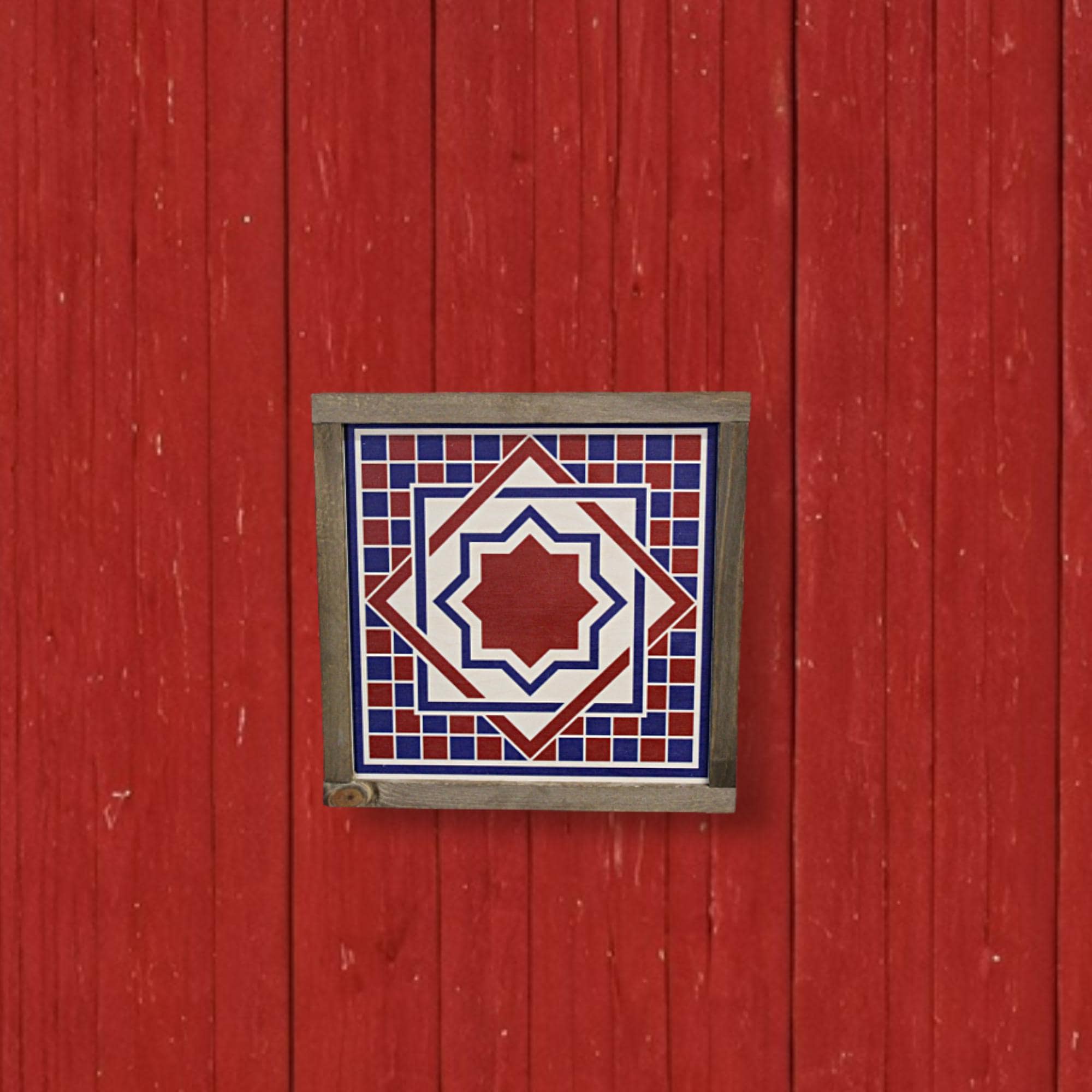 Printed Wood Geometric Tile Sign • Rustic Americana Wall Art • Full‑Color UV‑Printed Patterned Decor